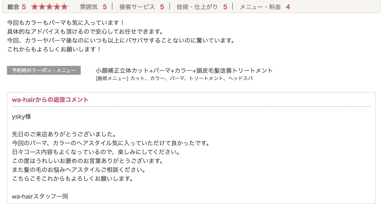 今回のパーマ、カラーのヘアスタイル気に入っていただけて良かったです。