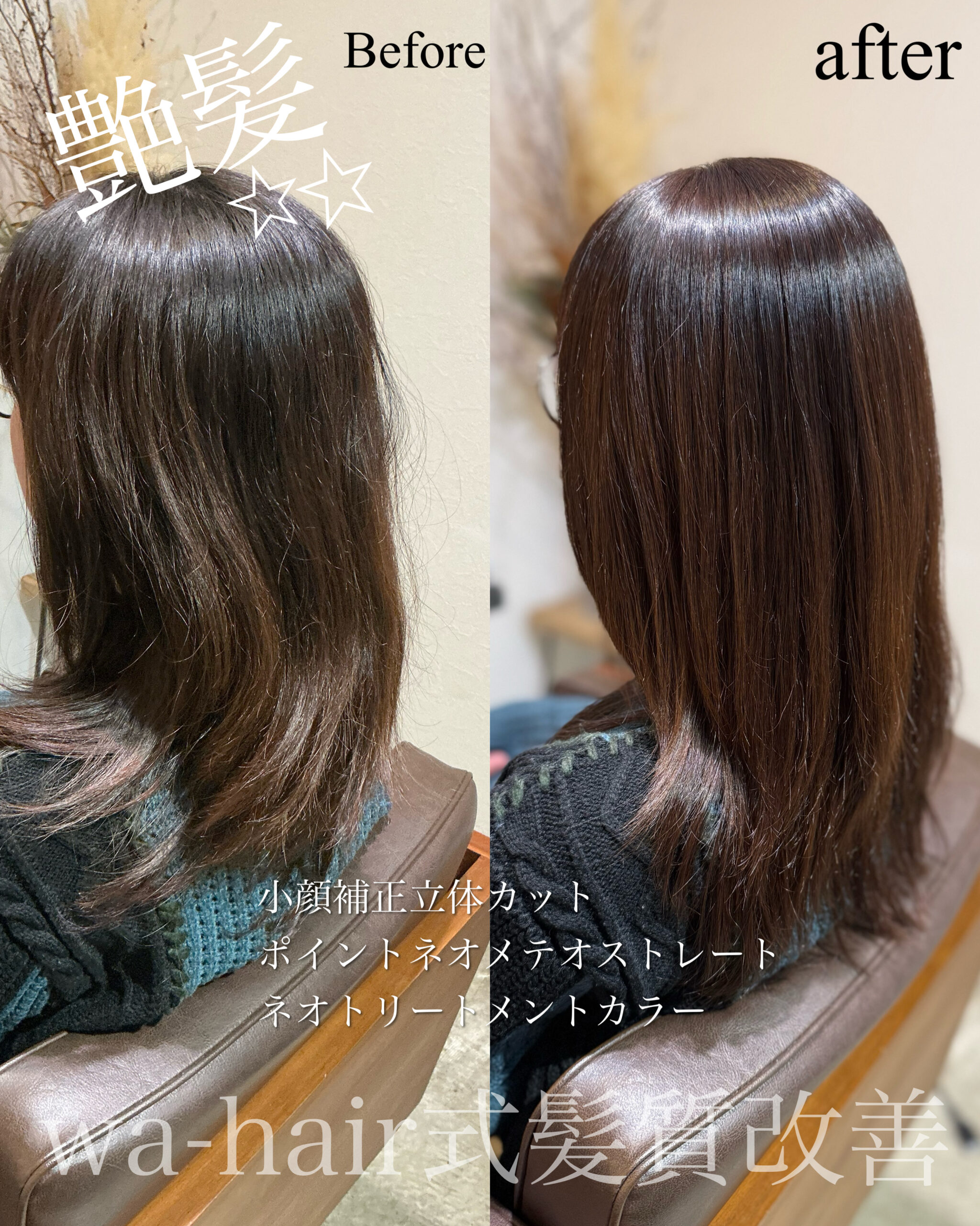 自然な柔らかさを残したまま艶髪に。