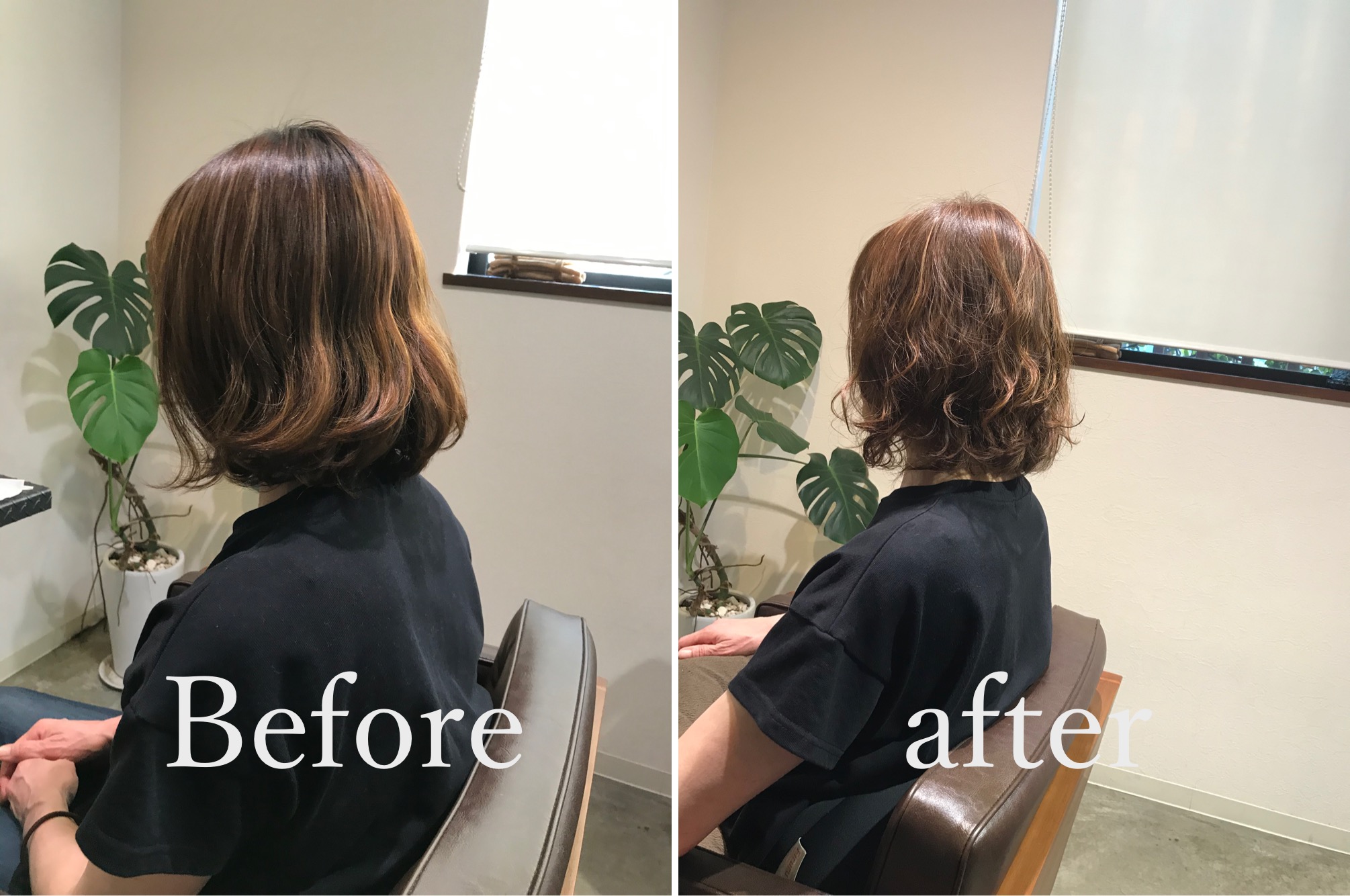 しっかりと丁寧なカウンセリングを させていただいた結果 前回あてたパーマをいかしたい。 お仕事で髪をくくれた方がいいのでくくれる ギリギリの長さで。 実際させていただいた施術は 小顔補正立体カット+トリートメしっかりントカラーコース。 しっかりと頭皮毛髪改善トリートメントで素髪に戻してあげてから 髪に栄養を入れてあげてカットで 骨格を補正しておさまりよく伸ばしやすく ツヤのある髪にしてあげます。