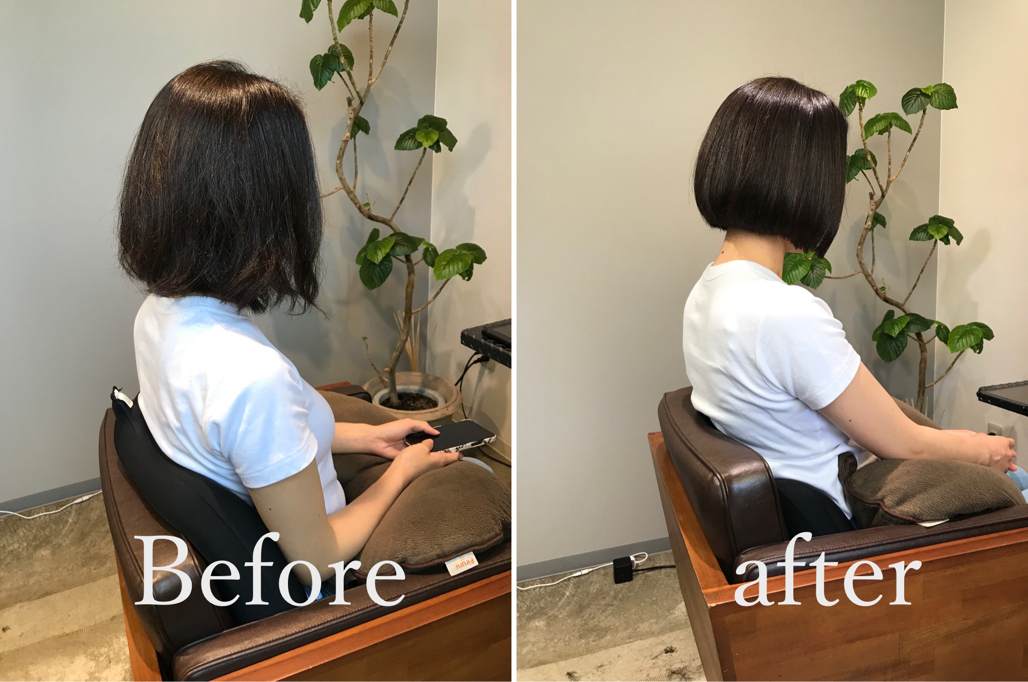 しっかりと丁寧なカウンセリングを させていただいた結果 育児でなかなか美容室に来れないので ヘアスタイルのもちがいいのがいい 髪を扱いやすくししたい 雰囲気を変えたい くくらないで良いヘアスタイルに 実際させていただいた施術は 小顔補正立体カットコース+髪質改善美髪エステ。 しっかりと 素髪に戻してあげてから 髪に栄養を入れてあげてカットで 骨格を補正しておさまりよく ツヤのある髪にしてあげます。
