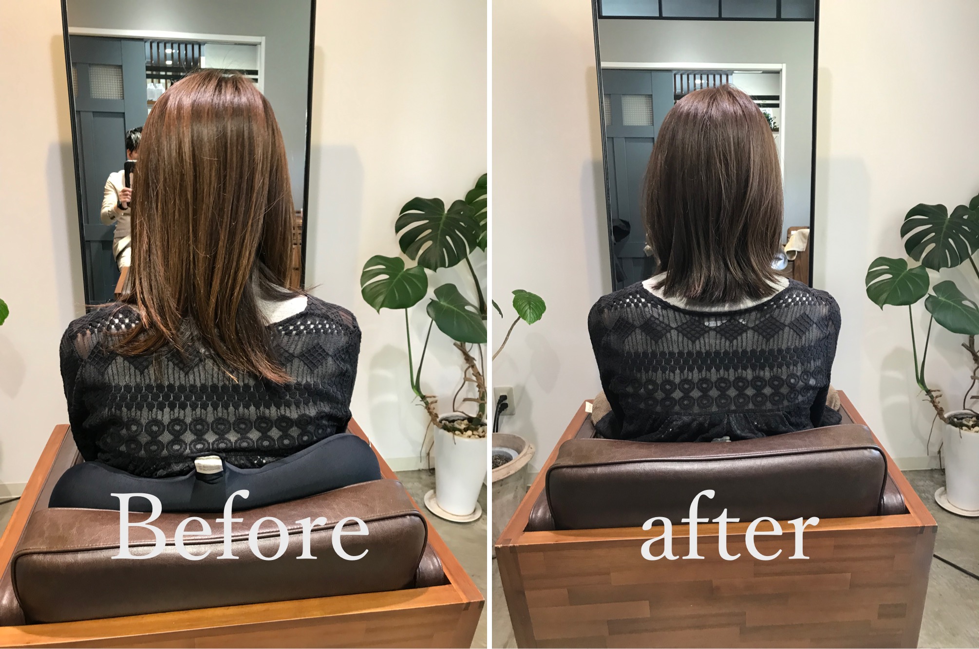 しっかりと丁寧なカウンセリングを させていただいた結果 朝のお手入れを簡単にしたい。 雰囲気を変えたい 実際させていただいた施術は 小顔補正立体カットコース+トリートメントカラー。 しっかりと頭皮毛髪改善トリートメントで 素髪に戻してあげてから 髪に栄養を入れてあげてカットで 骨格を補正しておさまりよく ツヤのある髪にしてあげます。