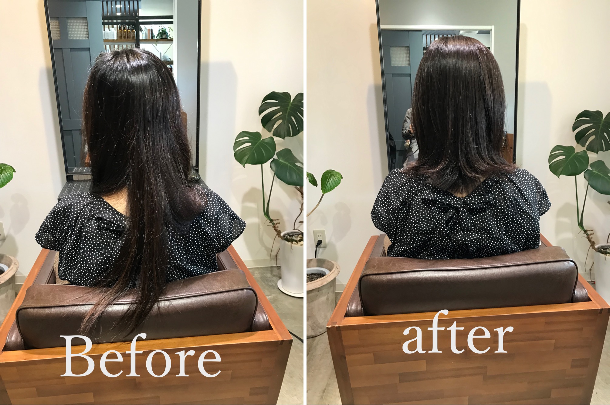 しっかりと丁寧なカウンセリングを させていただいた結果 朝のお手入れを簡単にしたい。 雰囲気を変えたい ヘアカラーはお仕事で大丈夫な明るさで 実際させていただいた施術は 小顔補正立体カットコース+トリートメントカラー。 しっかりと頭皮毛髪改善トリートメントで 素髪に戻してあげてから 髪に栄養を入れてあげてカットで 骨格を補正しておさまりよく ツヤのある髪にしてあげます。