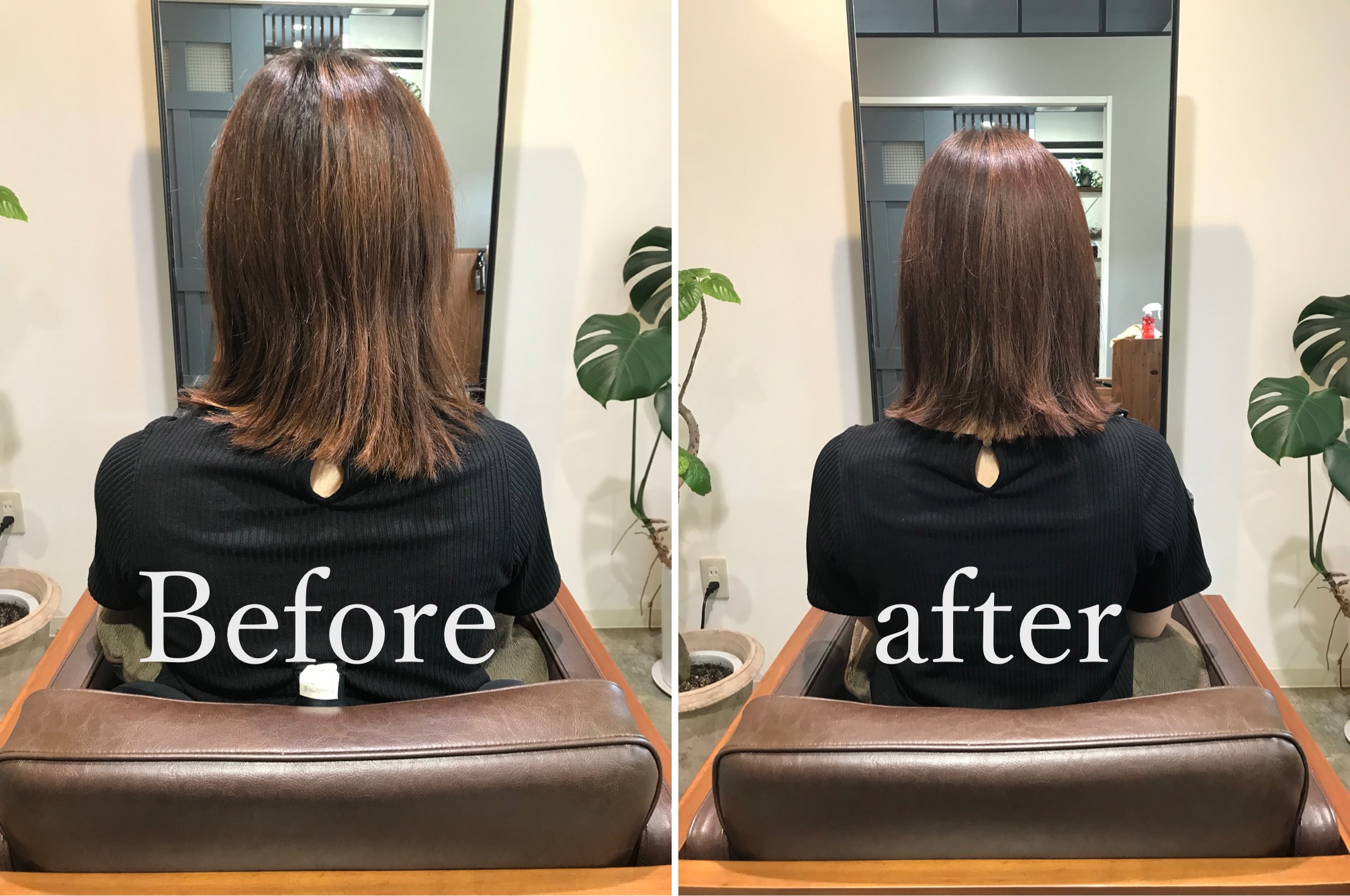 しっかりと丁寧なカウンセリングを させていただいた結果 朝のお手入れを簡単にしたい。 雰囲気を変えたい 実際させていただいた施術は 小顔補正立体カットコース+トリートメントカラー+all-in-oneトリートメント しっかりと頭皮毛髪改善トリートメントで 素髪に戻してあげてから 髪に栄養を入れてあげてカットで 骨格を補正しておさまりよく ツヤのある髪にしてあげます。