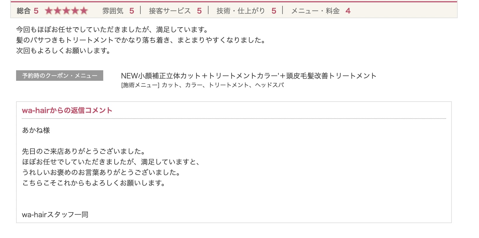 wa-hairからの返信コメント