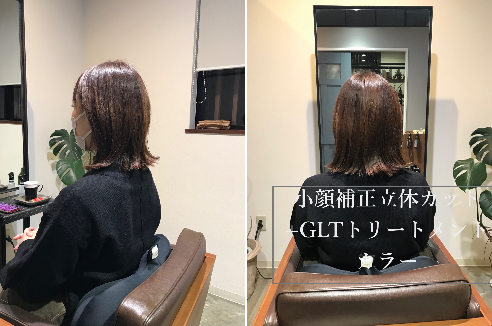 小顔補正立体カット+GLTトリートメントカラー+頭皮毛髪改善トリートメント